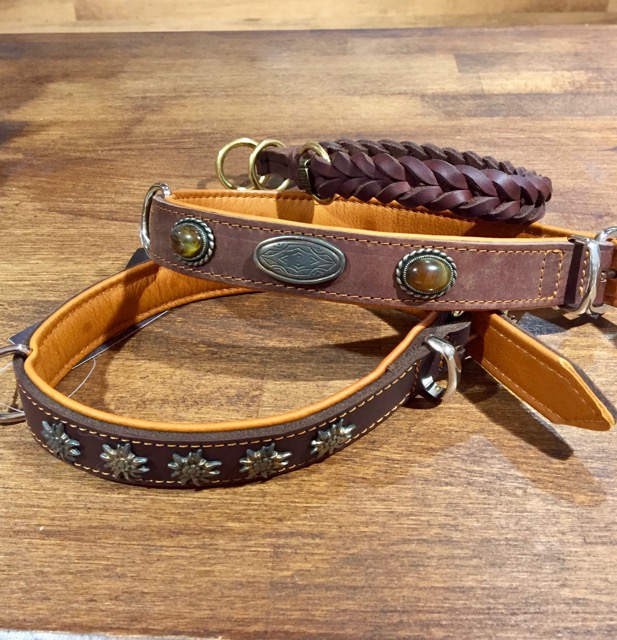 Wir führen Leinen & Halsbänder aus den unterschiedlichsten Materialien (Leder, Seil, Biothane, Mesh). Auch individuelle Farbwünsche können von diversen Lieferanten erfüllt werden.